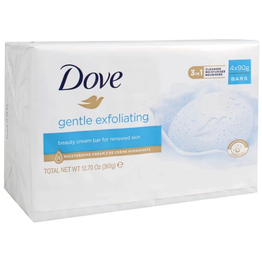 DOVE 3-in-1 Gentle Exfoliating Beauty Cream Bar is a nourishing cleansing bar designed to gently remove impurities, exfoliate dead skin cells, and moisturize the skin. Enriched with Dove’s signature moisturizing cream, it leaves skin feeling soft, smooth, and refreshed after every wash.